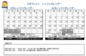 3・4月子供レッスンカレンダー
