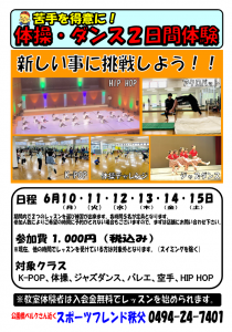 体操・ダンス2日間体験募集開始