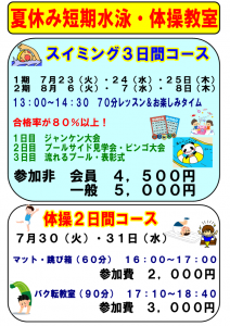夏休み【短期水泳・体操教室】募集開始