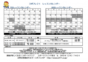 7・8月ジュニアレッスンカレンダー