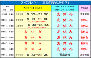 夏季(お盆)営業のお知らせ