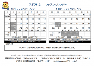 9月・10月レッスンカレンダー